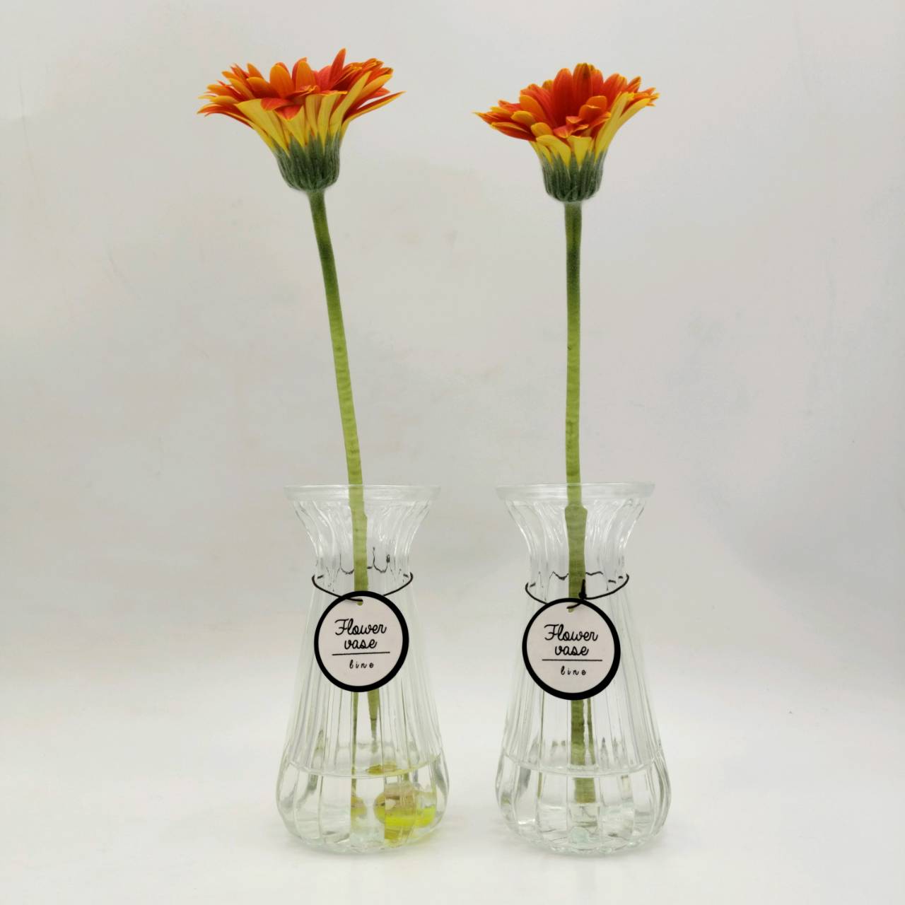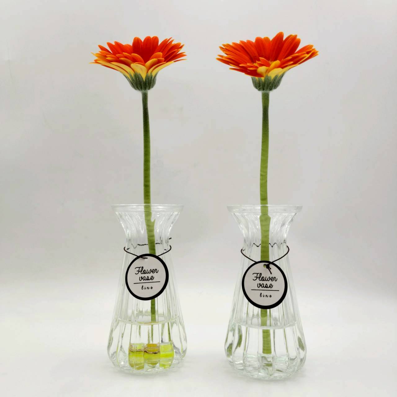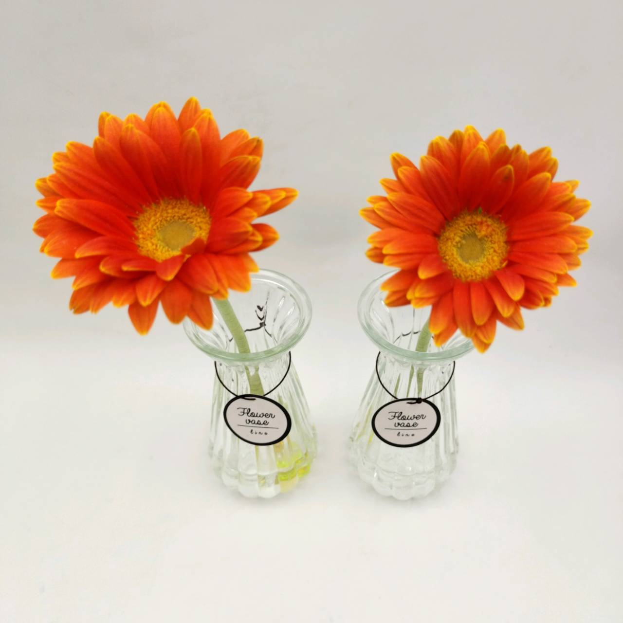 同じ条件の瓶を2つ用意し、同じ種類・同じ大きさの花を入れました。