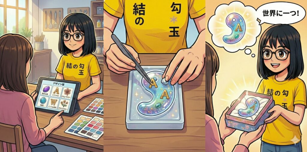 ギフトの価値を最も高めるのは「自分のために選んでくれた(作ってくれた)」という特別感です。レジン勾玉は多くの作家がオーダーメイドを受け付けており、相手の誕生石のさざれ石を入れたり、推しカラーで制作したりといったカスタマイズが容易です。制作過程で相手のことを想う時間そのものが、ギフトの質を向上させます。名前や記念日を小さなパーツで封入すれば、世界でたった一つの「守護石」が完成します。その特別感は、受け取った瞬間の感動を一生の思い出に変えるはずです。