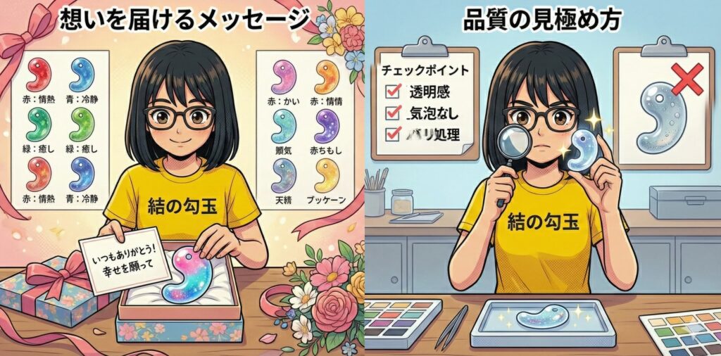 ギフトの価値を最後に決めるのは、そこに込められた「想い」です。特にレジン勾玉は、選ぶ「色」によって異なるエネルギーやメッセージを持たせることができます。